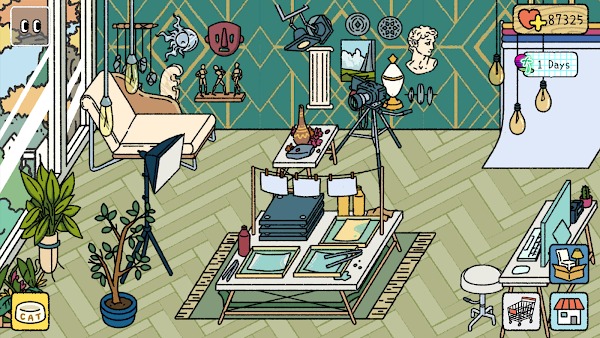 The game is well-known for its heartwarming atmosphere, pastel art style, and minimal stress mechanics. Everything you do—feeding cats, cooking meals, cleaning, or watching TV with your partner—earns hearts, the main currency used for unlocking furniture and upgrades.
