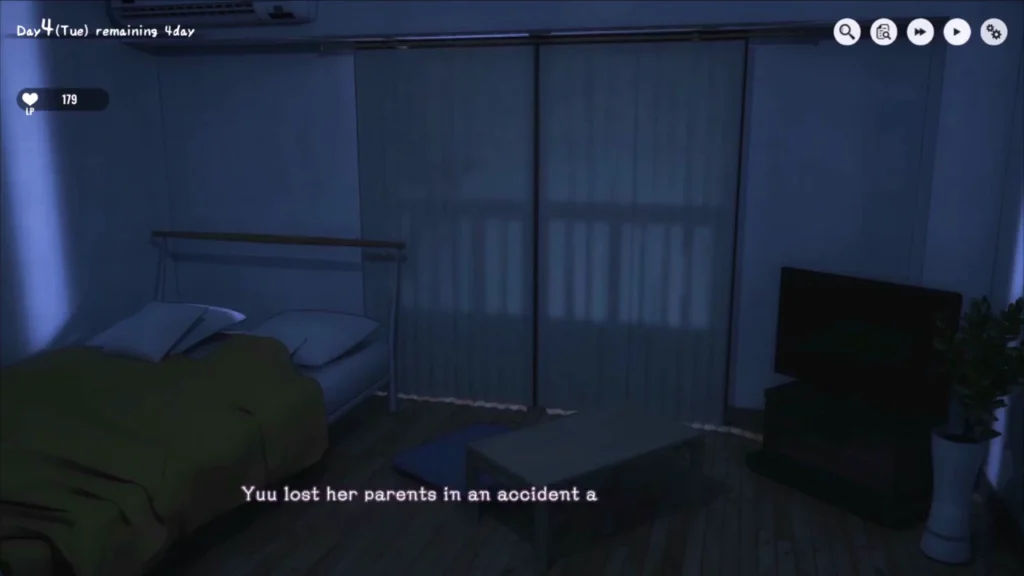 1Room: Runaway Girl is a life simulation and visual novel hybrid developed by Akabaka and published for Windows PC. The gameplay centers on your interaction with a runaway teenage girl who ends up living with you in your small, single-room apartment. There’s no traditional combat or exploration — the core mechanics revolve around daily routine management, dialogue, and relationship-building.